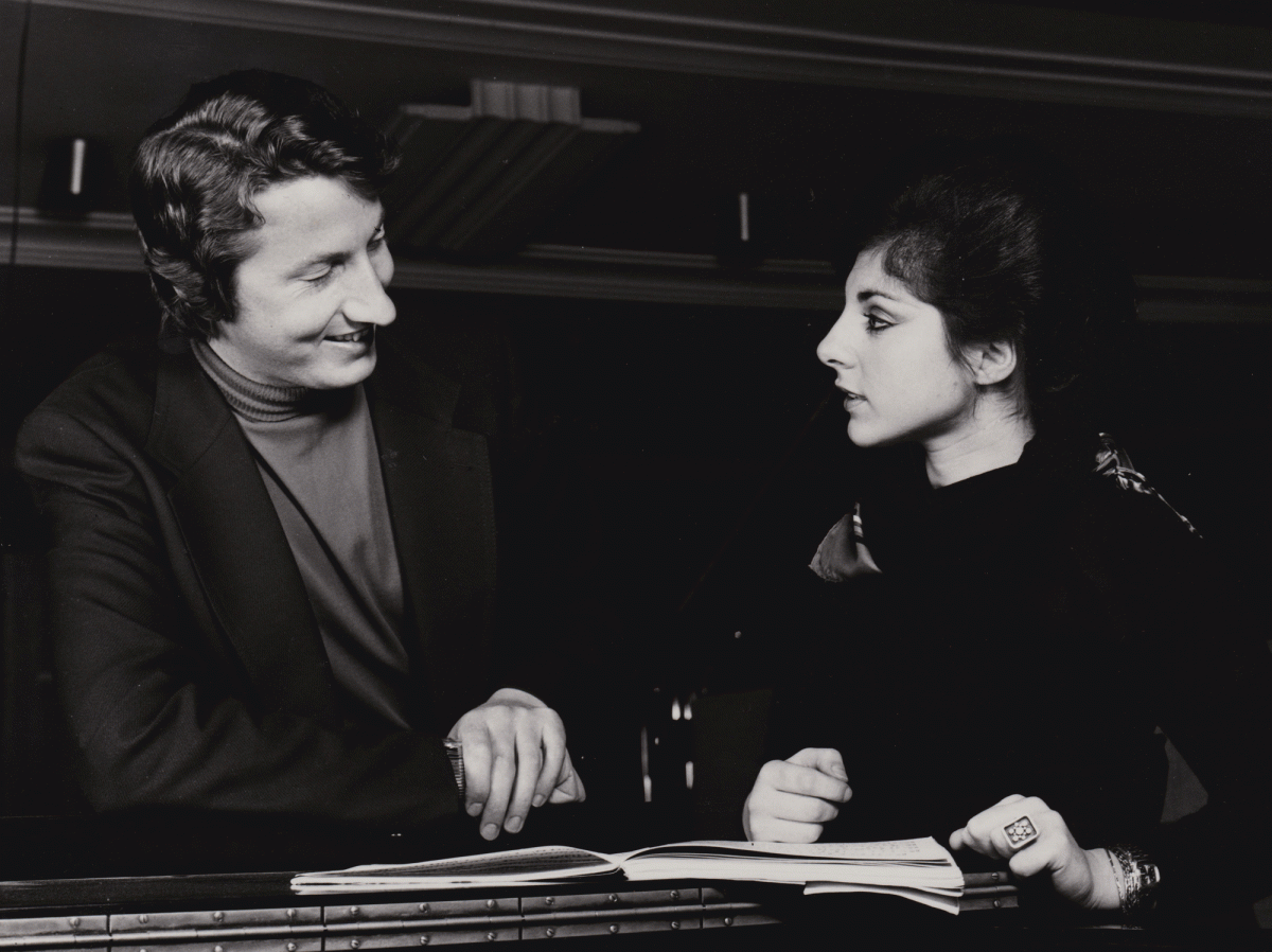 Leslie Howard and Maria Vandamme in discussion during the 1976 Percy Grainger recording sessions(photo courtesy Ron Layton) |