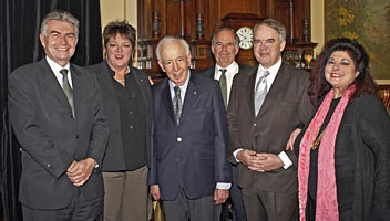 | From L-R: The Hon. John Hill MP, Lisa Gasteen AO, The Rt. Hon. Sir Zelman Cowen, Dr Douglas Mitchell, Senator The Hon. Rod Kemp and Maria Vandamme (CEO) |